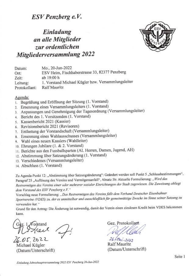 Einladung zur Jahreshauptversammlung